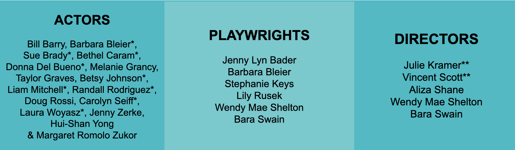 Creative Director: Bara Swain | Stage Manager: Kim T. Sharp